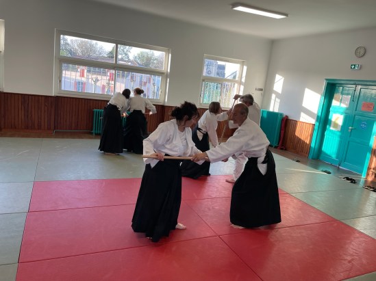 Ameno Tori Fune, ou « le bateau-oiseau du ciel, » est un exercice fondamental en Aïkido. Il s’agit d’une pratique symbolique qui combine mouvements, respiration et sons pour harmoniser le corps et l’esprit. Inspiré de la mythologie Shinto, cet exercice représente un voyage spirituel, souvent comparé à la traversée d’une rivière vers un état d’éveil ou de sérénité. L’exercice se divise en trois étapes principales : EI HO : Le départ, symbolisant le début du voyage. Le pied gauche est en avant, et les mouvements sont accompagnés du son « O ». EI SA : La lutte contre les courants, représentant les défis de la vie. Le rythme s’accélère, et le son « A » est utilisé. EI EI : L’arrivée à la rive, marquant l’harmonie retrouvée. Le son « I » célèbre l’union entre le ciel et la terre. Après cet exercice, une pratique appelée Furi Tama est souvent réalisée. Elle consiste à recentrer l’énergie et purifier l’esprit en agitant les mains jointes, tout en se concentrant sur un point entre les sourcils. C’est bien plus qu’un simple échauffement : Ameno Tori Fune aide à développer l’énergie vitale (Ki), renforcer la concentration, et approfondir la compréhension des principes de l’Aïkido