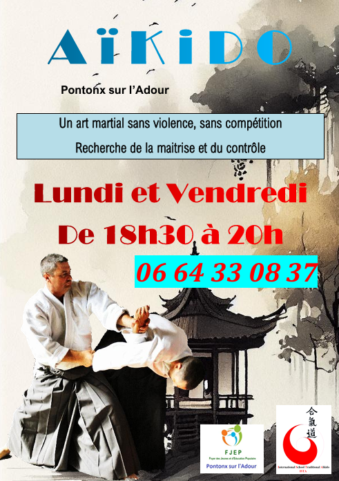 L’été touche à sa fin, la reprise des cours s’annonce! Je vous donne rendez vous vendredi 5 septembre à 18h30. Venez nombreux et parlez en autour de vous! L’aïkido n’est pas médiatisé donc il faut faire la promotion, coller des affiches, en parler, participer au forum…on se voit au dojo vendredi prochain pour vous distribuer les affiches. Un petit effort qui amènera de nouveaux élèves. Les deux premiers cours de découverte sont gratuits et les inscriptions se font toute l’année!